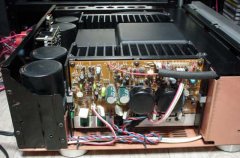 背面近くにあるコンデンサは22000μFで、AB級アンプ用です☆