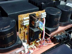 ひっくり返っている基板にスピーカーリレーが付いていますが