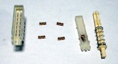 組み立てる時は細かい端子をベースの端子に正確に組み付けたまま、スプリングを縮めたロッドを入れて