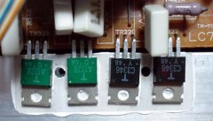 小さいトランジスタの足と、右上に有る中くらいのトランジスタの足にクラックがありました