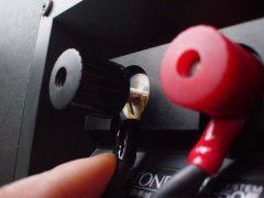 スピーカー端子の下の傾斜にも合った傾斜が