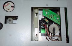 左の小さな穴にはトレイ引き出しとチャッキング用のモーターとギアが見えます