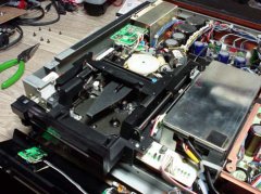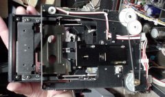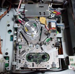 トレイを取り去って、初めてヘッドドラムとご対面出来ました☆、4D.D.メカです☆(この部分だけでモーターが5個あります)