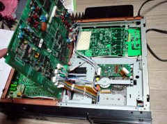 開いた基板には調整ボリューム満載ですが、動かしてはいけないボリュームもあるので