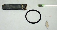 その前に、電子パーツクリーナー(またはブレーキクリーナー)を綿棒に染み込ませて、ゴムベルトを拭いてみました☆