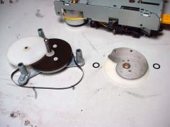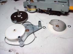 この2枚のギアとプーリーでディスクの回転を制御しています☆