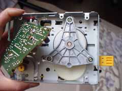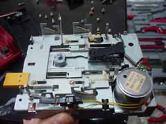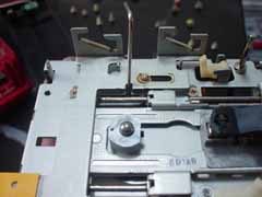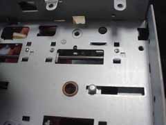 金属板ギアにある大きい穴と、シャーシの穴、ディスクスロットのスライドシャーシの穴が