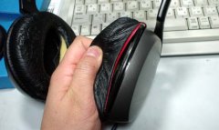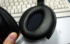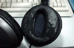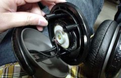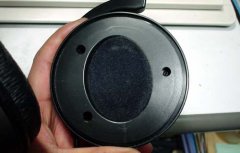 新品のイヤーパッドを半分くらい裏返してヘッドフォンに取り付けます