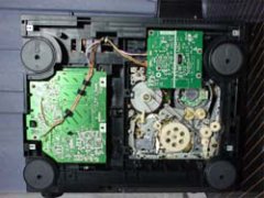 そこで分解して出そうとしたけど、上から出すとテープが痛むので、下を分解してギヤを回し