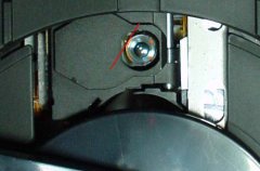 ピックアップレンズの横に、ブチルゴムに絶縁テープを付けたものを貼ってみました☆