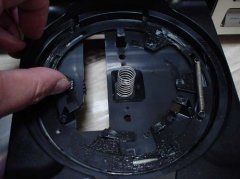 ドライバーの先か何かで、ターンテーブル裏の部品を少し回転させ