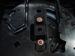 ターンテーブル裏の部品にはゴムブッシュが2箇所入っています