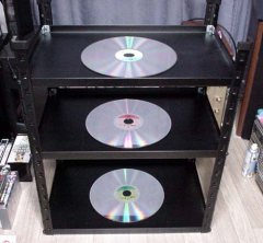 さっそく3つの棚全部にレーザーディスクを貼ってしまいましょう☆