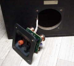 ウーハーを取り外して(赤いラインの有るケーブルが+です)