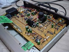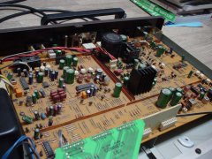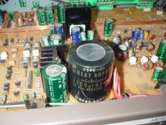 ケースに入ったトランスと、基板上に大きなブロック・コンデンサがあります☆