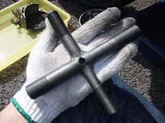 こんな感じで真ん中にねじ込んで、ゴムハンマーでガンガン回します☆