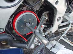 原付用のバンドホルダーで固定して、真ん中のボルトを外します☆