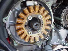エンジン内部から出た微細な金属粉がフライホイールとステータの強力な磁石に引き寄せられて