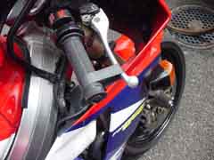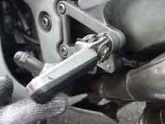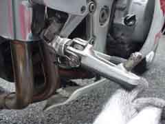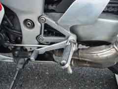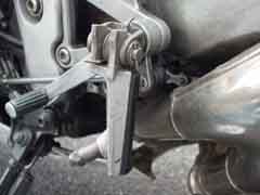 この純正ステップは転倒した時に折れないように、上側に倒れる仕組みですが