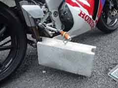 リアブレーキは重量ブロックにアンカーを付けた物を使って掛けておきます☆
