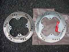 右のブレーキディスクはVFR400R (NC30)の物なのですが、ボルトオンで取り付け可能です☆