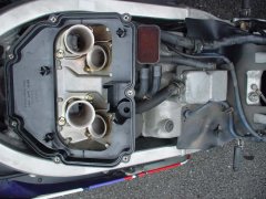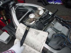 これを何度も繰り返すと、そのうち「ポコ!」とか鳴って、前バンクのキャブレターが外れます☆