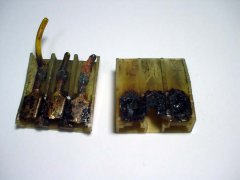 切り落としたコネクタの中はこんな感じで炭になって燃えてました★