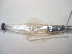 (カットする時は必ず1回でカットします、複数回カットするとビニールの小片がピストン下に入ってしまう危険があります★)
