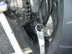 ここはスパナとメガネレンチの二段掛けで取り外します☆