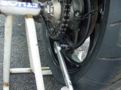 リヤブレーキのキャリパーは、かなり奥まった場所にあります★