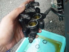 ピストンの穴にフリュードを満たして、ピストンを押し込みます☆