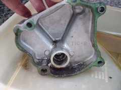 ラジエターポンプを外すとオイルが出てきますので