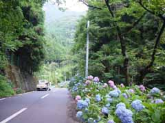 ウネウネと山道を抜けて行くと、道の両側にアジサイが咲き乱れています☆