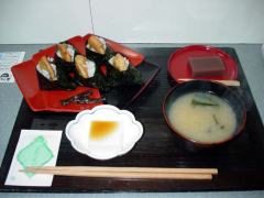 別のお店で天むす定食を食べてみました☆、手前の白いのは冷奴だと思っていたら、寒天でした☆