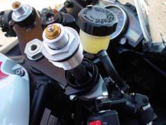 フロントをジャッキアップして、フロントフォークを大気開放したのですが